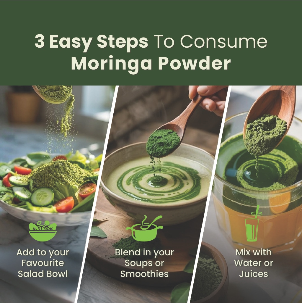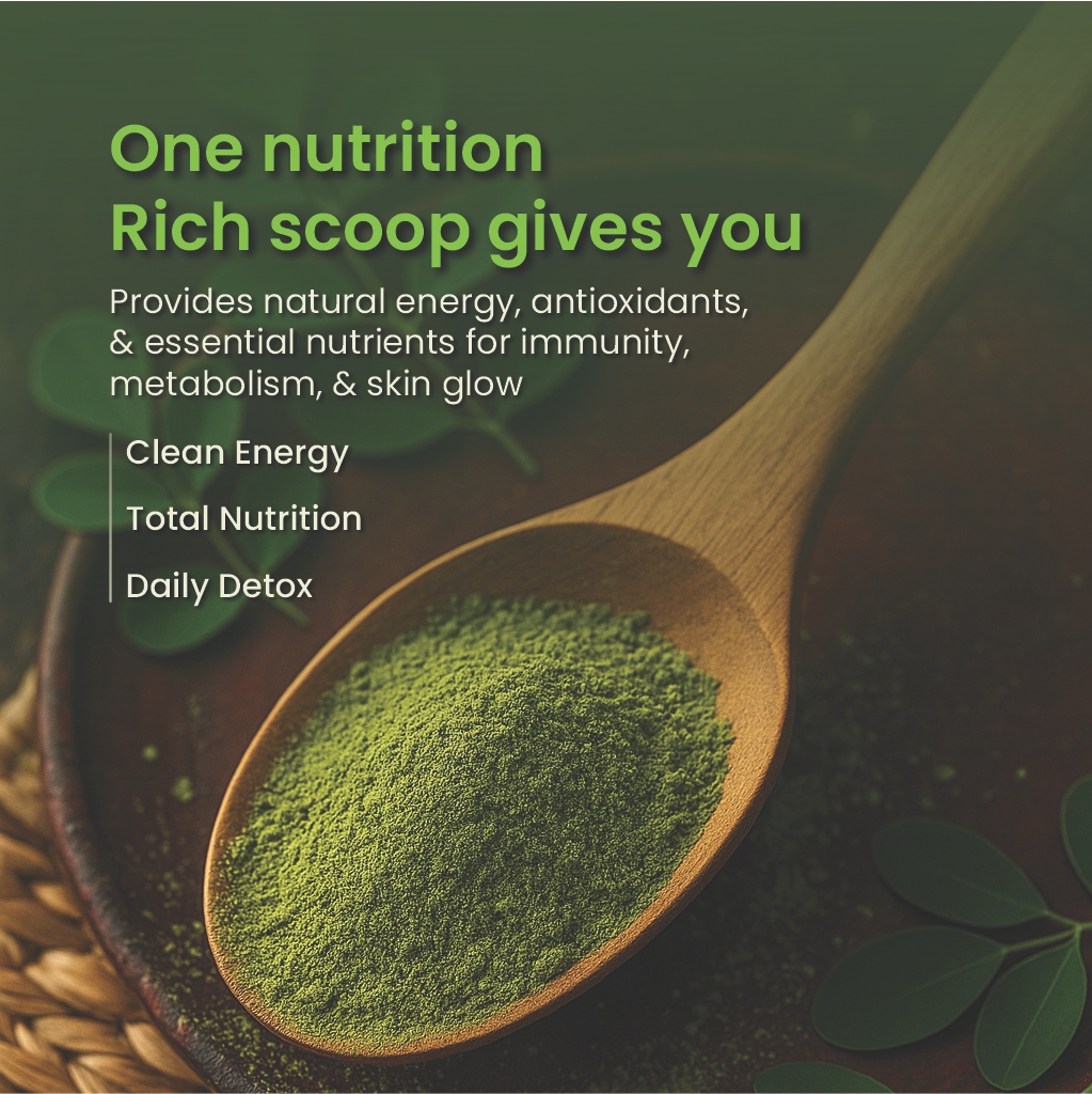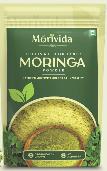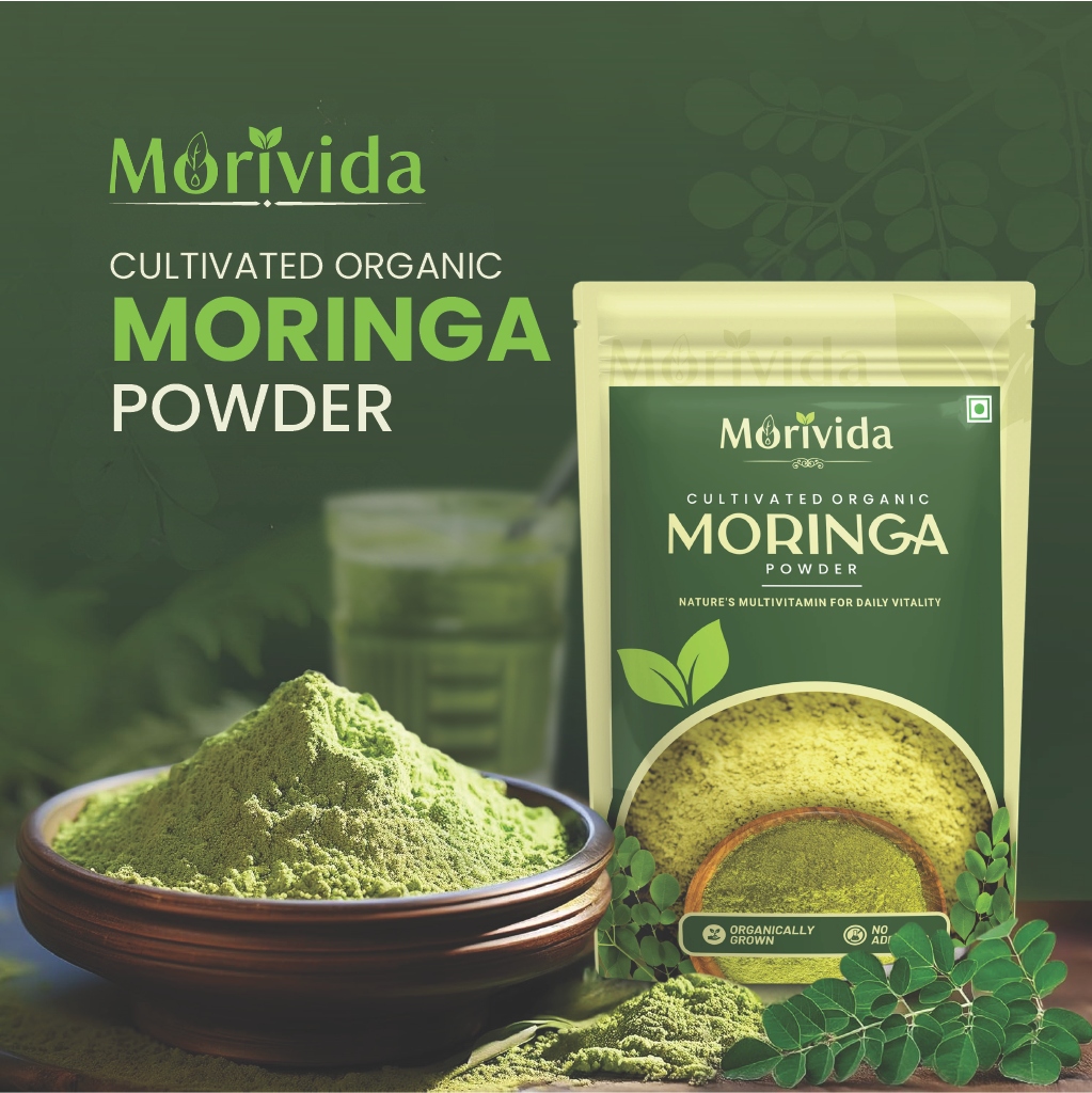Morivida Moringa Powder is a natural source of Vitamins A, C, and E. It is packed with essential minerals like Calcium, Iron, and Magnesium to support your body's needs.